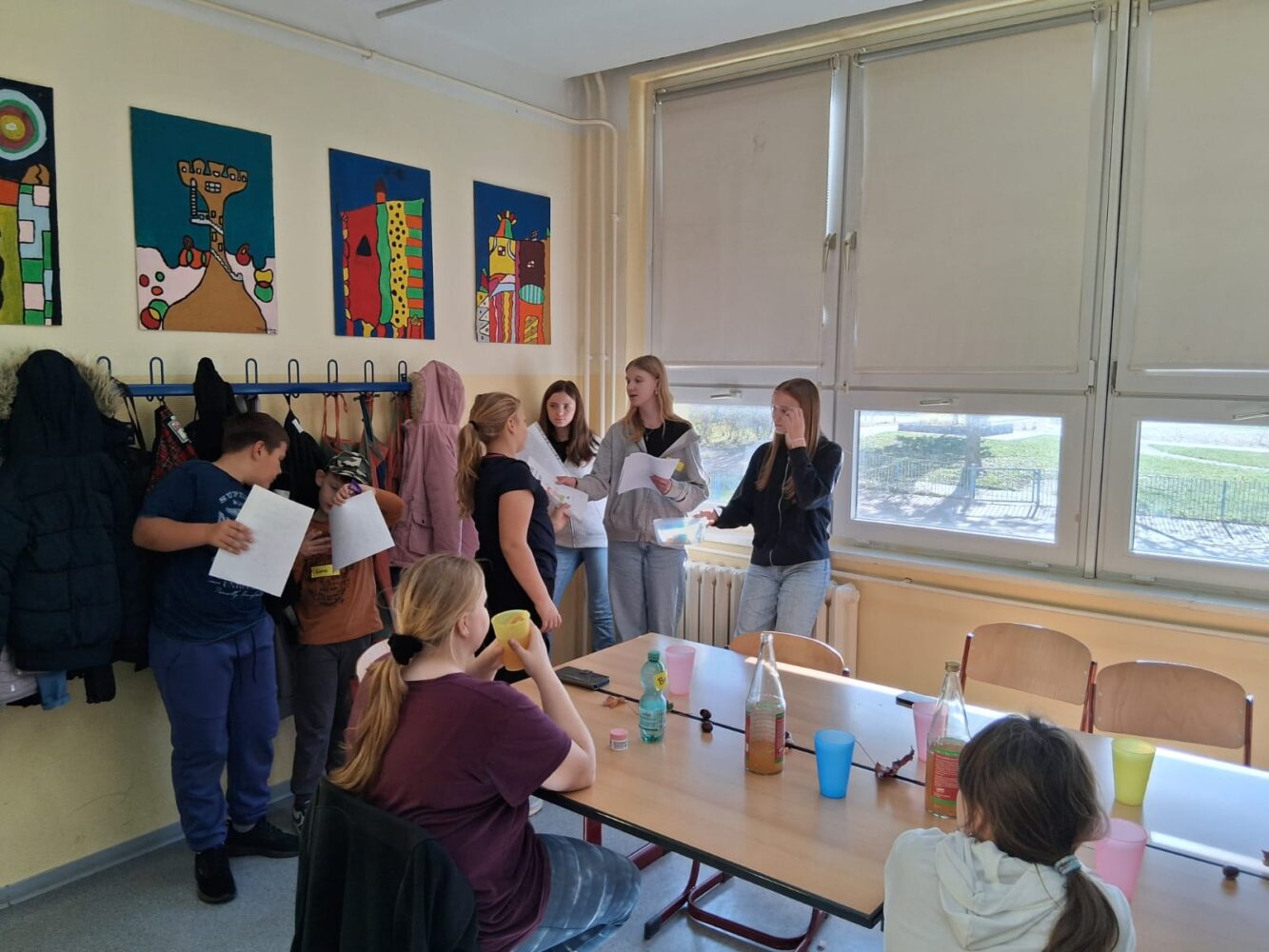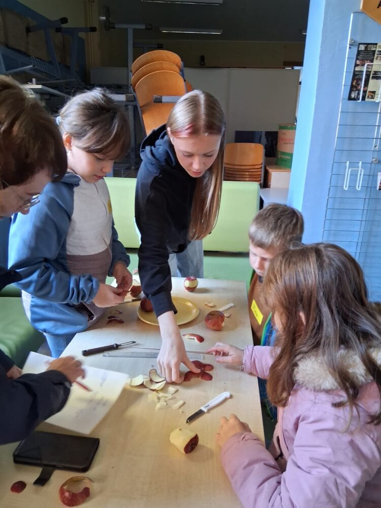 4.Klassen:Apfel-Ralley 5.Klassen:Backe,backe Apfeltaschen 7.Klassen:organisation Apfel-Ralley 9.&10.Klassen: von der Streuobstwiese in die Flaschen