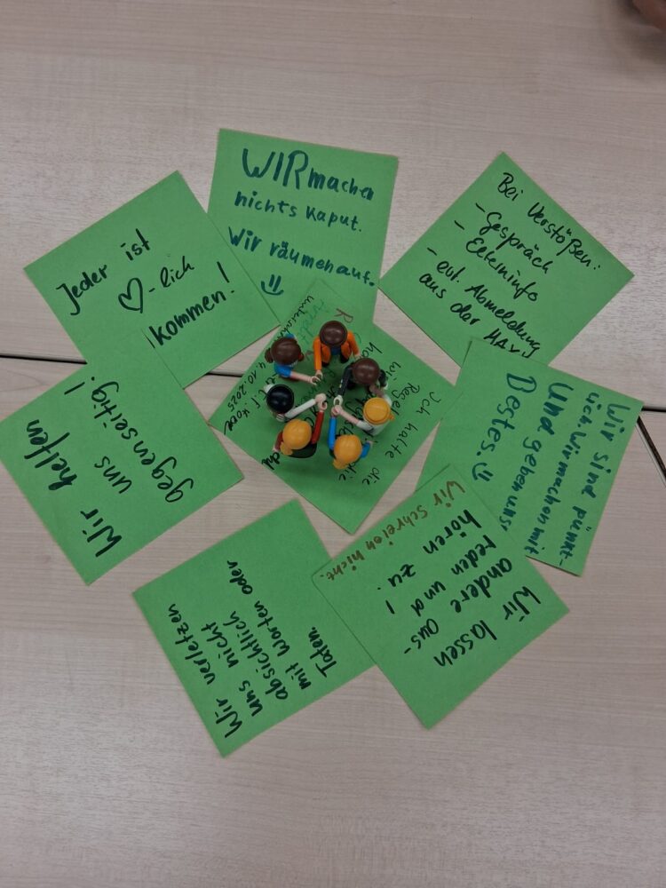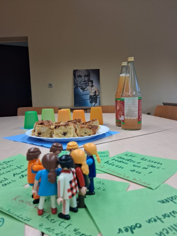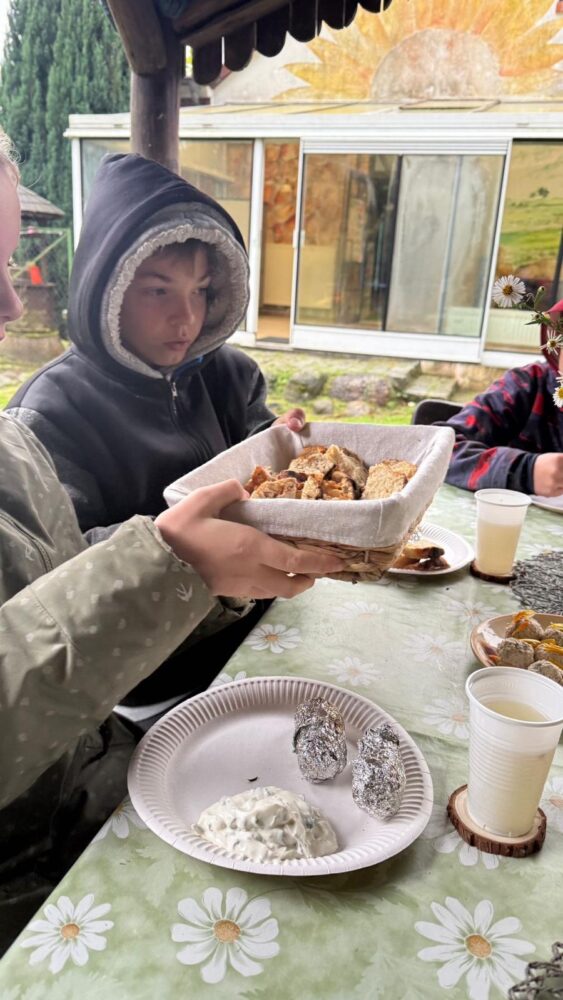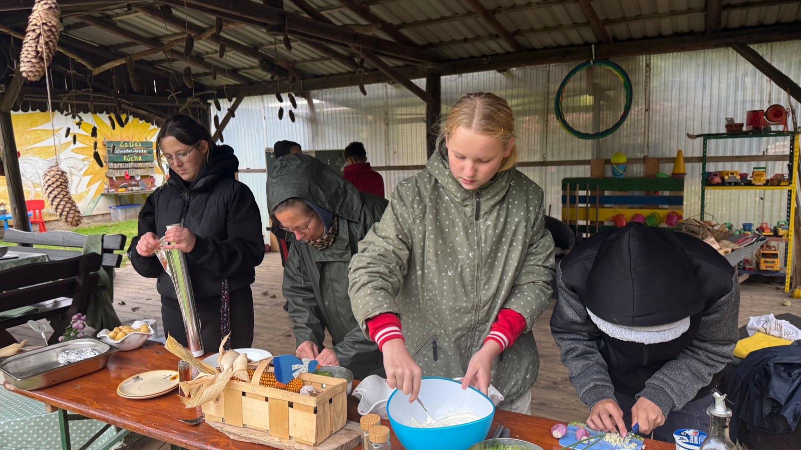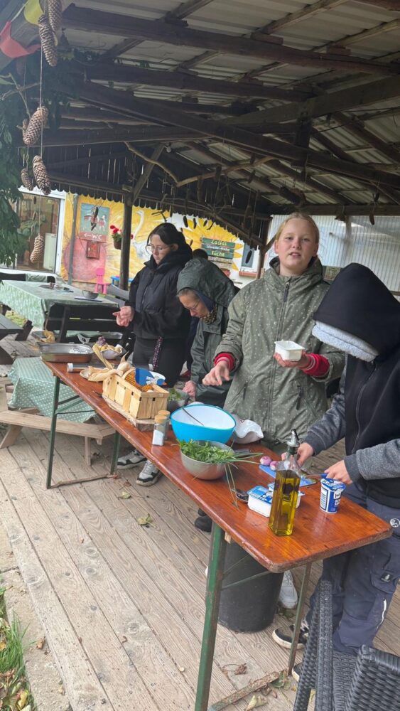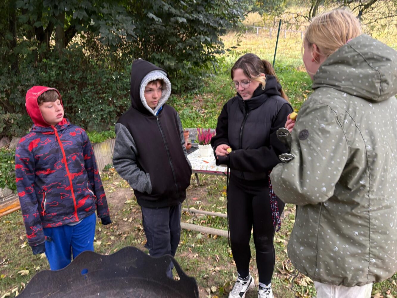 4.Klasse: Die Freiheit besteht in erster Linie nicht aus Privilegien, sondern aus Pflichten. Albert Camus/ Gruppenregeln und Elterngespräche 5.Klasse: Kegeln mit den Eltern, oder doch lieber mit Kugeln? 6.Klasse: Outdoor-Küche am Burgwall. Trotz Sturm und Regen… ein gelungener Vormittag. Vielen Dank an Nadine Roll, die Ihre Zeit und Ihren zauberhaften Hof zur Verfügung gestellt hat, um uns ein weiteres tolles Erlebnis zu bescheren. Kochen und Backen mit offenem Feuer. Es gab wärmenden Kräutertee, Backkartoffeln und drei Sorten Brot. Dazu frischen Quark mit selbst gesammelten Kräutern aus dem Burgwall-Garten. Zum Nachtisch wurden Frischkäse-Bällchen mit Melisse und Mandeln zubereitet. Auch der Tischschmuck wurde von den Kindern gesammelt & gefertigt. Ein großer Anziehungspunkt waren die Streicheltiere. Es gab von allen Teilnehmern großes Lob für das leckere Essen und die persönlichen Eindrücke an diesem Samstag am Burgwall. 7.Klasse: Die Burg Penzlin und ihr schauriger Hexenkeller. 9.Klasse: Echte Mehlbeere- Baum des Jahres 2024 Bei Regen und Sturm hat die Gruppe den Baum des Jahres 2024 am Goldbach-Weg (Klepelshagen) in die Erde gebracht.