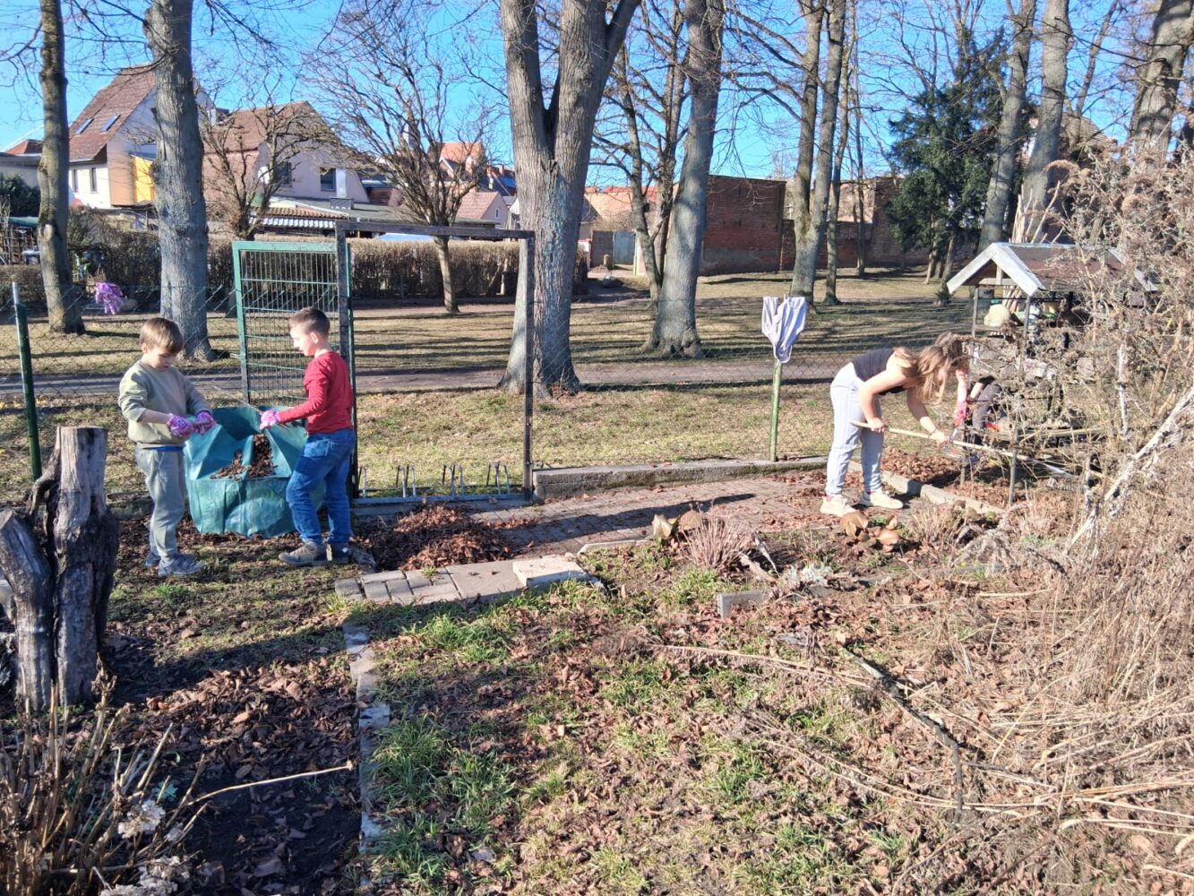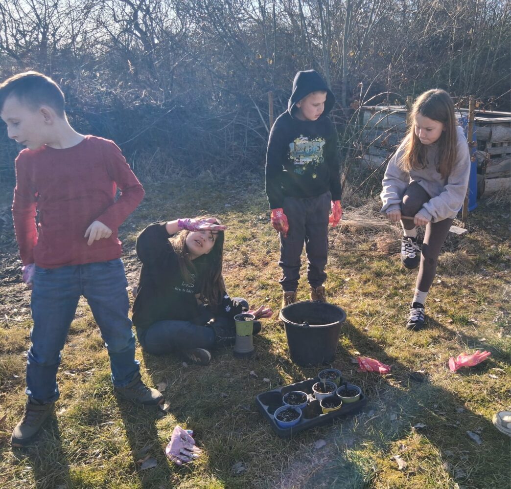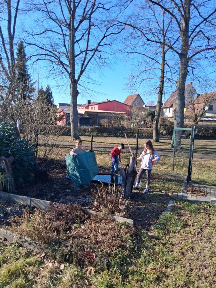 Der Frühling steht in den Startlöchern und die Kinder der 4. Klassen erkundeten den Garten der Max Akademie. Mit Ausdauer und Elan wurde das alte Laub zusammen geharkt, die Pflastersteine gefegt, die ersten „wilden“ Tiere entdeckt und Blüten betrachtet, die ihre Köpfchen aus dem Erdreich strecken. In kleine Töpfe wurden Studentenblumen eingesät, die später ausgepflanzt werden sollen. Die Gruppe freut sich schon auf den nächsten Gartentag.