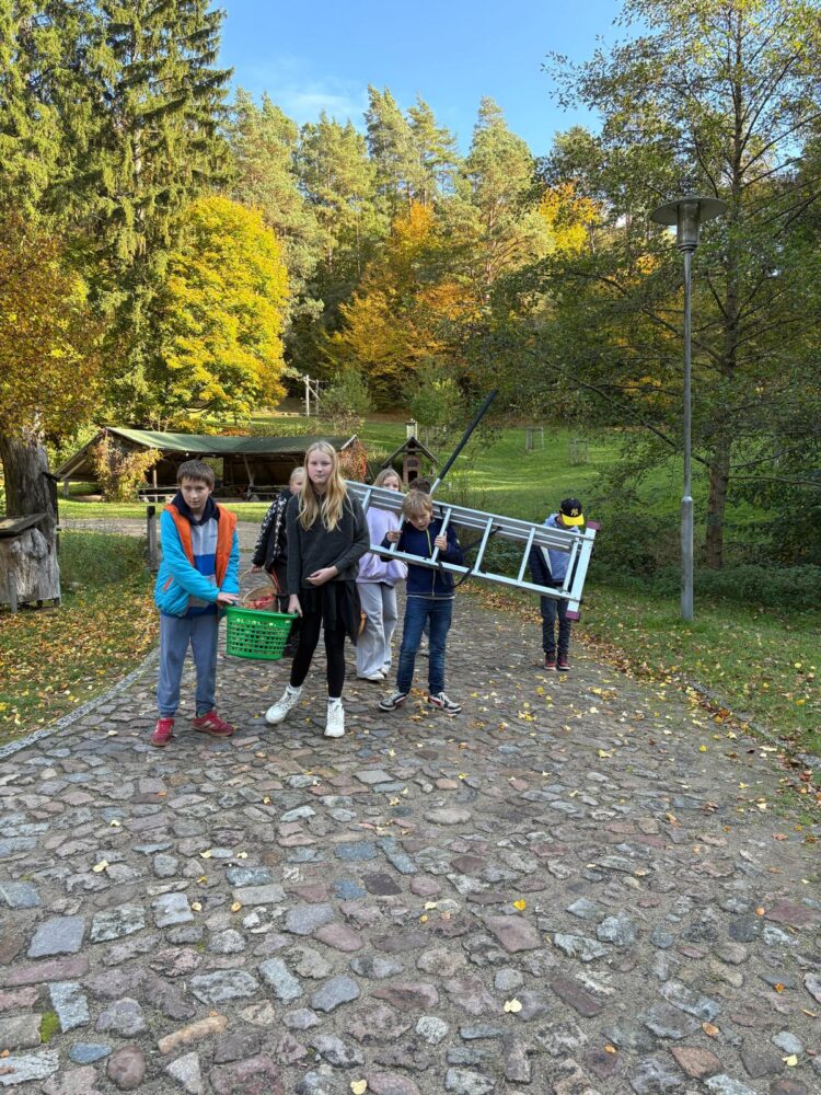 Nach der Wanderung kehrten alle hungrig und müde zurück. Im Jugendwaldheim warteten bereits frisch gebackene Schürzkuchen, die allen neue Energie gaben, so konnte das weiträumige Gelände erkundet werden. Nach dem Abendessen bereitete die 7. Klasse einen fröhlichen Spieleabend für alle vor, bei dem viel gelacht wurde. Danach hieß es: Gute Nacht.