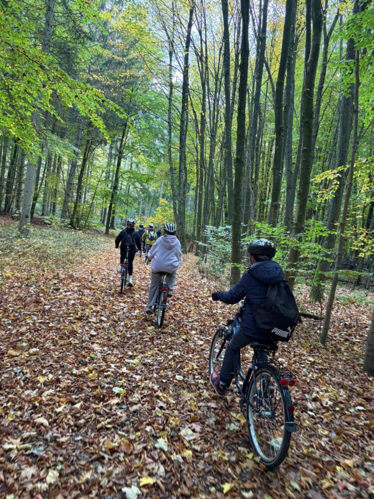 Der Dienstag begann mit einem ausgiebigen Frühstück. Anschließend ging es auf eine Fahrradtour durch den Wald. Der Weg führte vorbei an Mooren, Weiden, Rindern und einem glitzernden See. Nach einigen anstrengenden Steigungen ging es mit Rückenwind zurück ins Tal. Am Ende der Tour war allen die Freude ins Gesicht geschrieben.