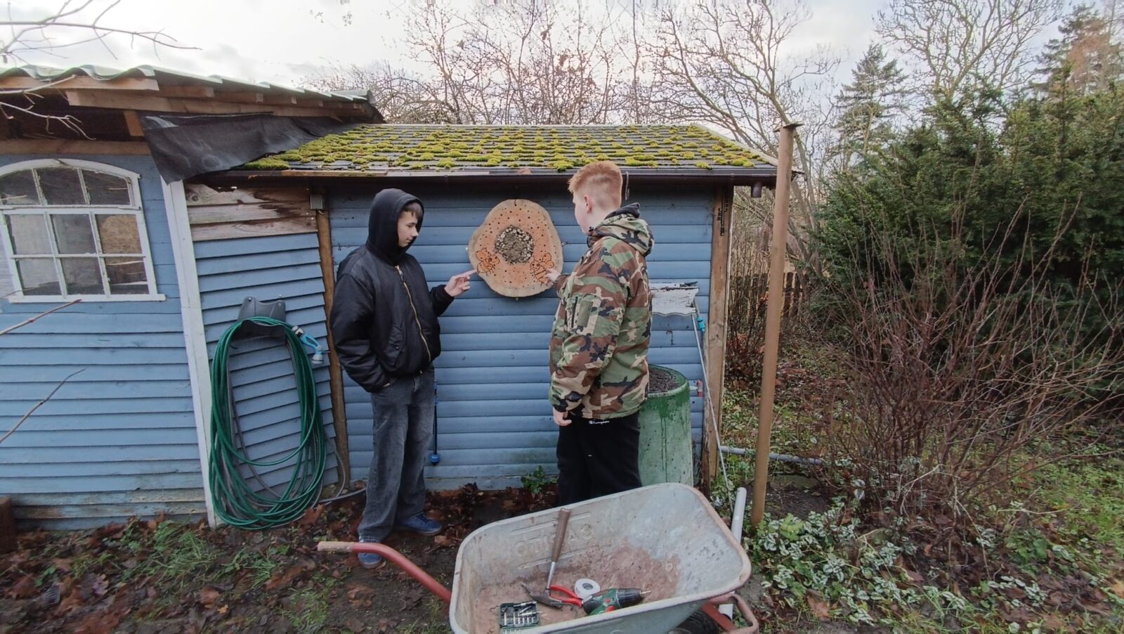 Ohne Insekten gäbe es kein Leben, wie wir es kennen, da diese für die Bestäu­bung von etwa 75% der welt­weiten Nutz­pflanzen verant­wort­lich sind, was für unsere Ernäh­rung und die Ernäh­rung vieler Tiere uner­läss­lich ist. Wie schon in den vergan­genen Jahren, haben die Kinder der siebten Klassen an unsere Insekten und auch an Fleder­mäuse gedacht. Die im Jugend-Wald­heim Stein­mühle gefer­tigten Bauten wurden die Tage im „Max-Garten“ aufgehängt.