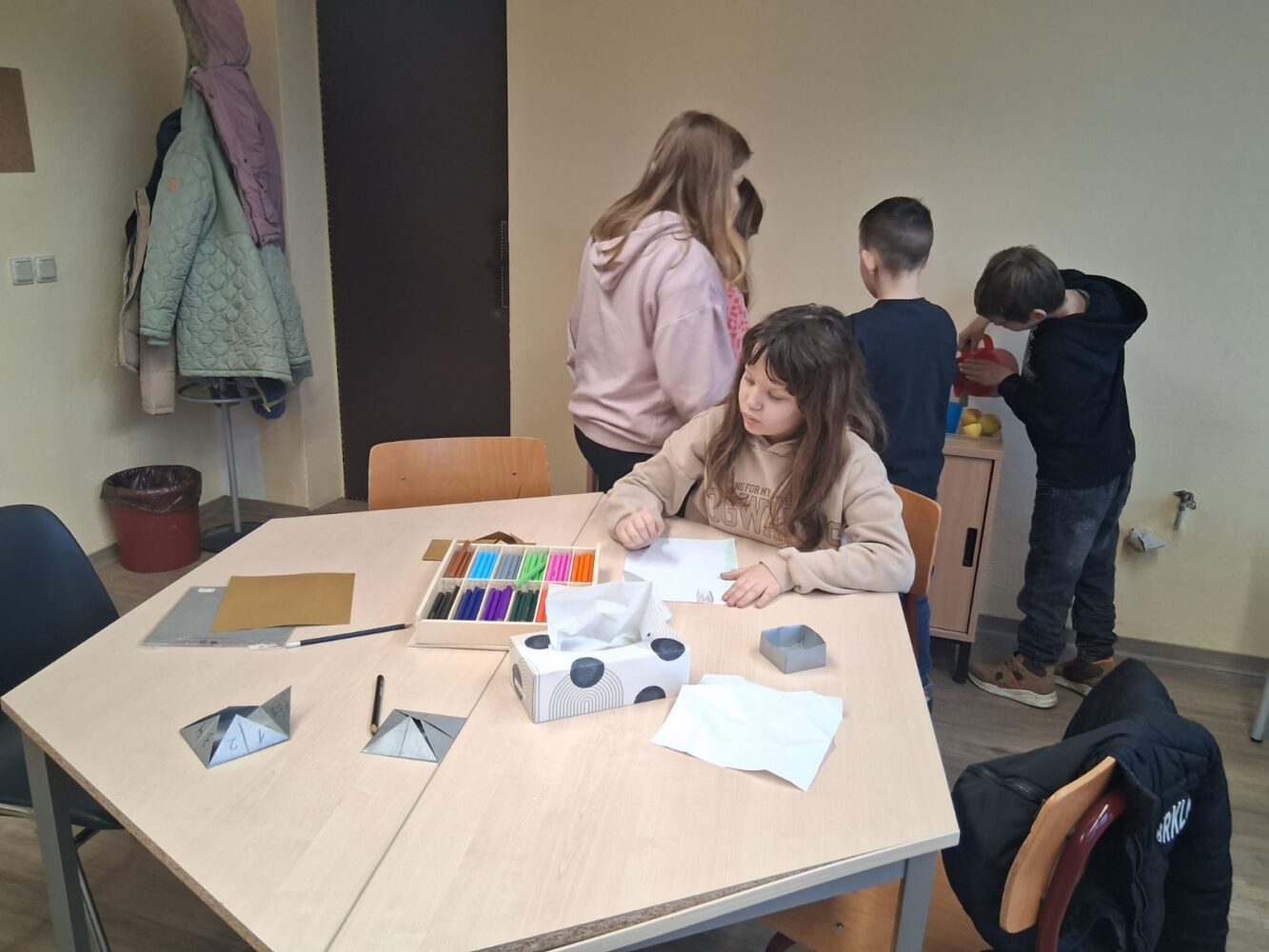 Himmel und Hölle, Schach­teln mit Deckel und Papier­flieger mit Weit­flug-Wett­be­werb, zogen alle in ihren Bann.