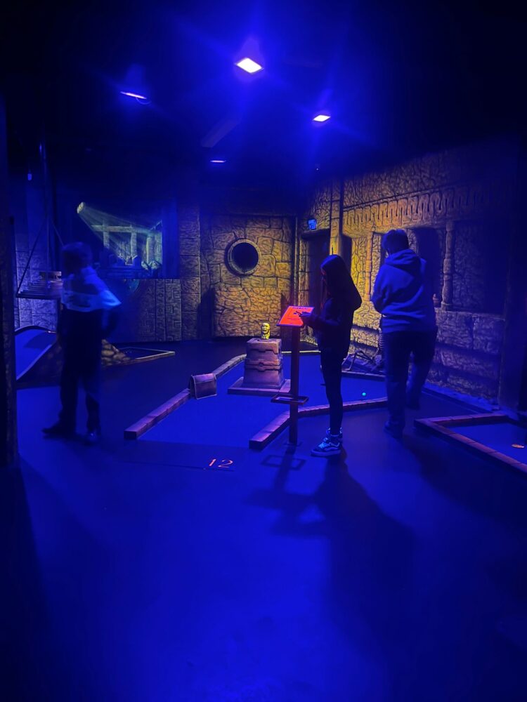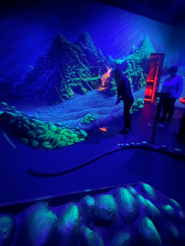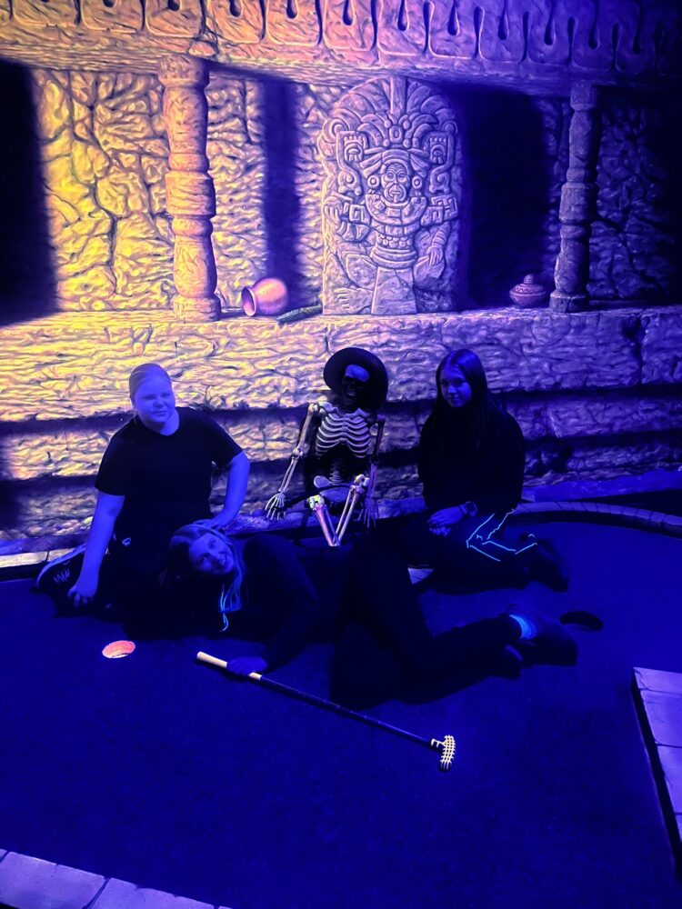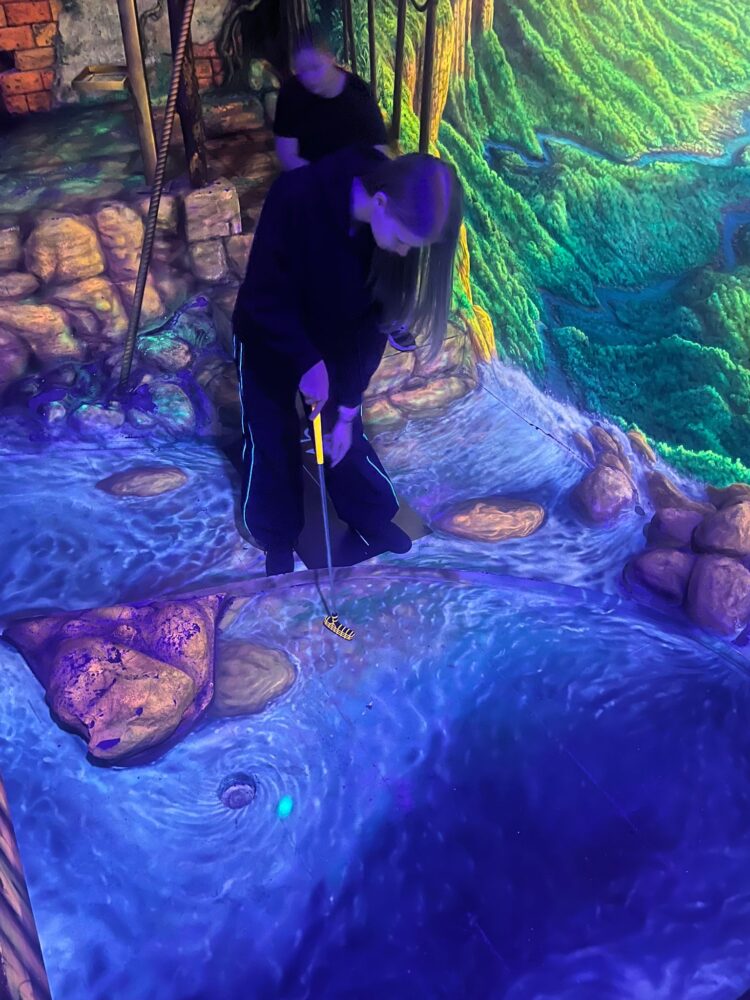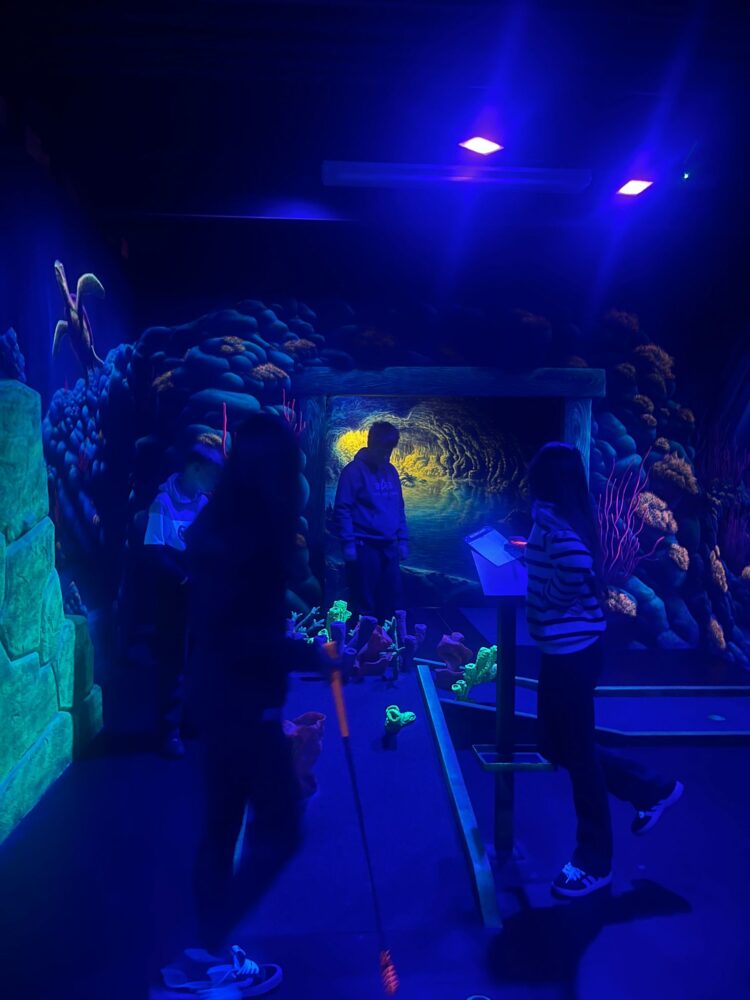 Schwarzlicht-Minigolf der Siebtklässler